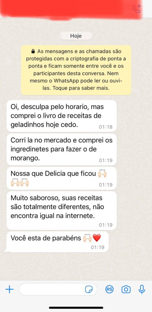 Já tenho mais de 5 mil alunas na minha primeira apostila de geladinho gourmet.